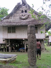 Pendant quelques heures de liberté nous avons pu avoir de sympathiques échanges avec les gens, très curieux mais toujours agréables. Andric a même trouvé le moyen de se faire draguer par une "pas belle mais gentille Papoue"...C'est seulement en début d'après-midi que nous avons rembarqué dans une pirogue pour nous en retourner par un autre bras du fleuve.. Il n'y avait pas eu de fête de Nouvel An au village à cause du récent décès de leur chef.